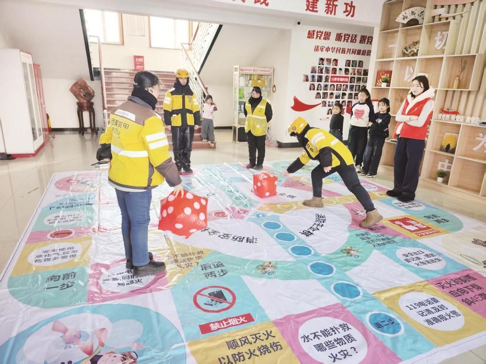 近日,海南区拉僧仲街道新桥社区创新开展真人飞行棋安全知识活动,邀请辖区新就业形态劳动者参与游戏,让安全知识与游戏深度融合。 (段维娜 摄)