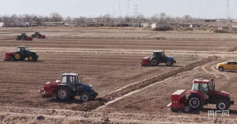 小麦播种机在巴彦淖尔田间播种小麦(央广网发 李浩 摄)
