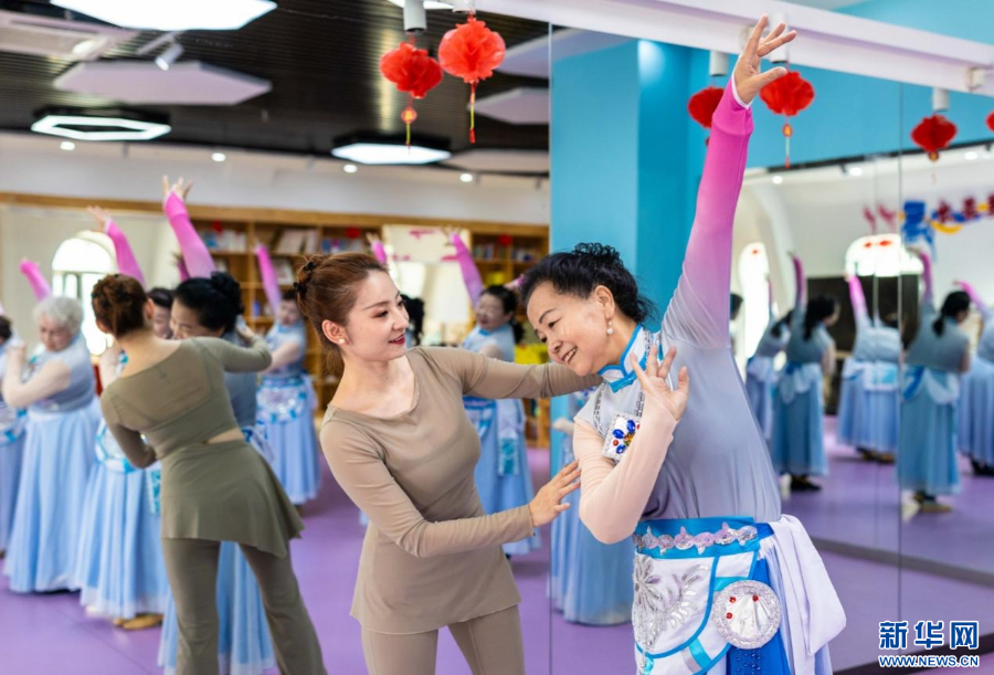 老年学员在呼和浩特市玉泉区老年大学民族舞课上学习。新华网发(丁根厚 摄)