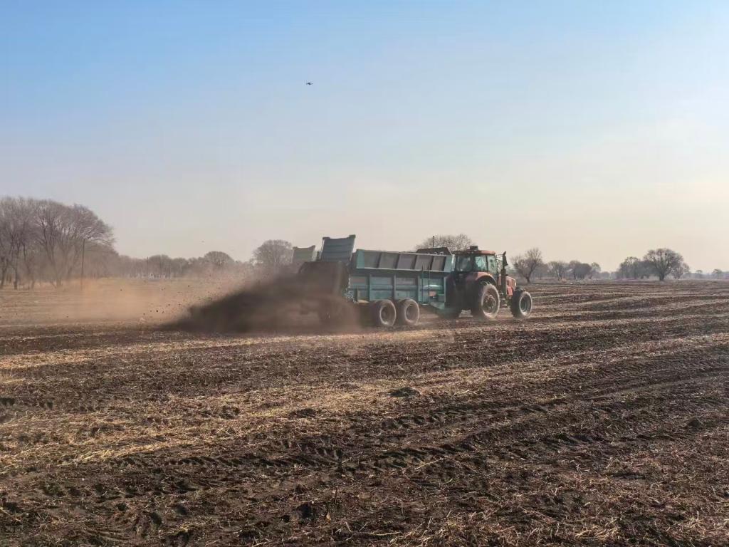3月10日,扎赉特旗农户正在向黑土耕地抛撒农家肥。(王群 摄)