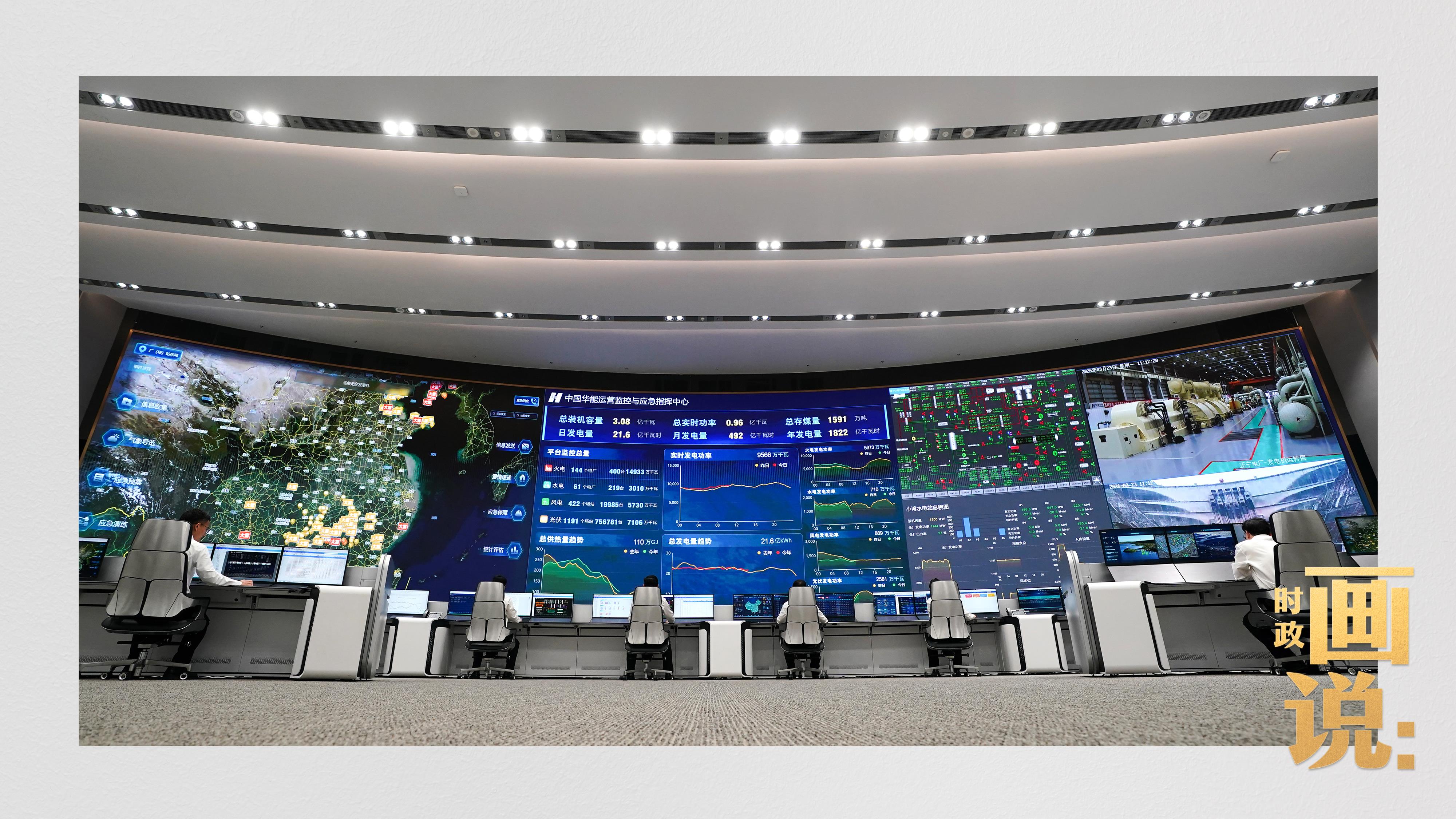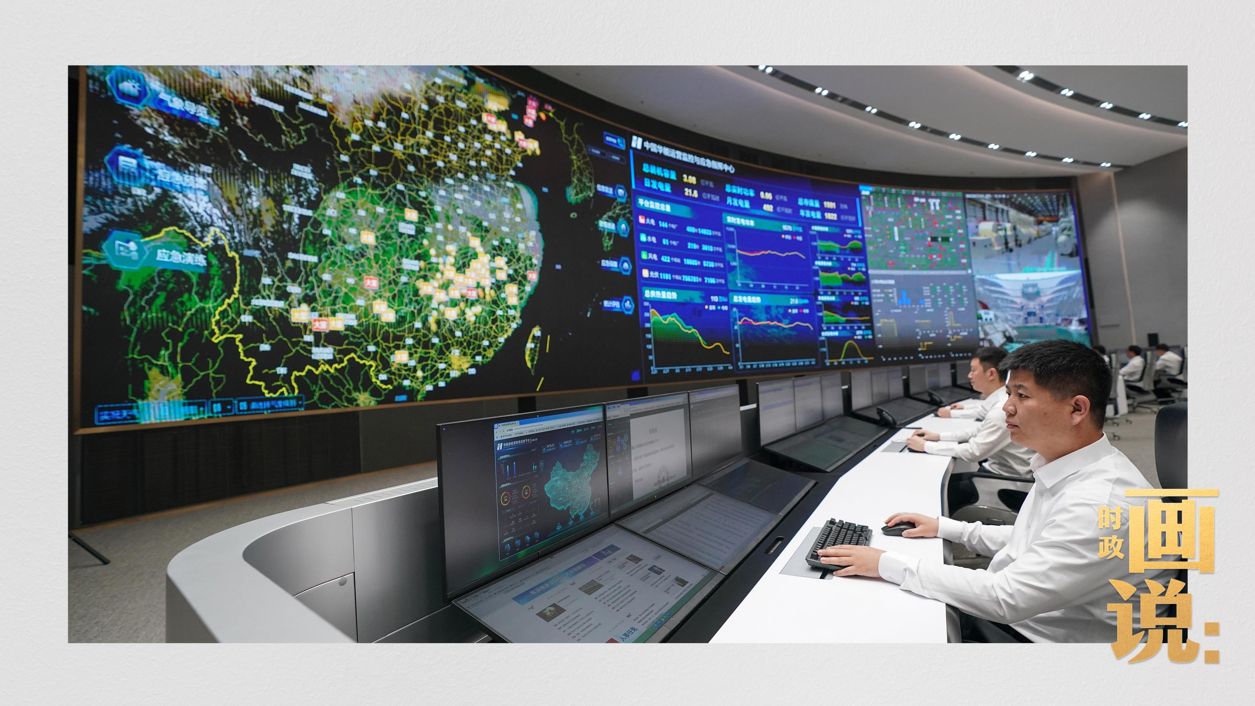 △中国华能运营监控与应急指挥中心,工作人员正在忙碌
