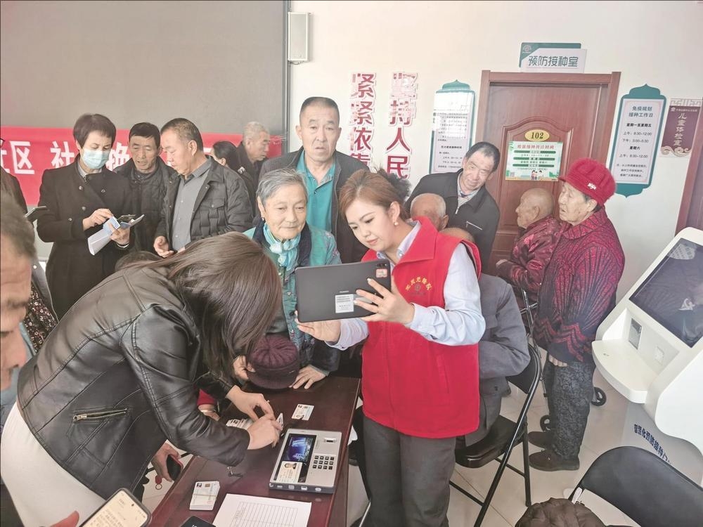 近日,农行乌海分行狮城支行工作人员走进海勃湾区千里山镇新丰村开展“社保换新”便民服务,同步开展消费者权益保护和反诈知识宣传,以适老化、一站式服务打通金融服务“最后一公里”。 (华婷 摄)