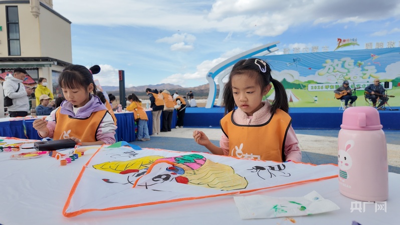 活动现场DIY风筝的小朋友(央广网记者 李春雪 摄)