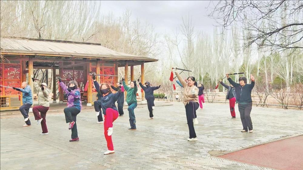 随着全民健身理念深入人心,越来越多的市民走出家门,以运动开启活力一天。太极剑等传统健身项目备受青睐,在强身健体、修身养性的同时,也为城市增添了别样生机与活力。图为3月30日,市民在市人民公园练太极剑。(刘春霞 摄)