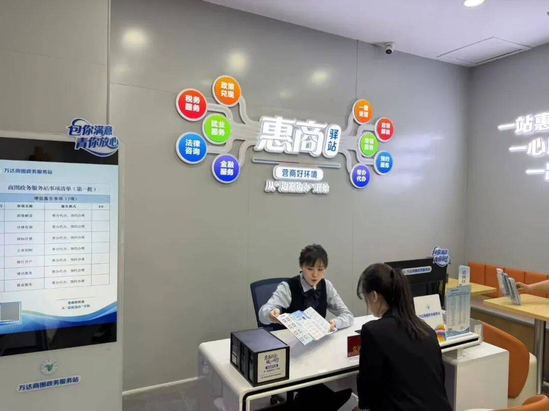 这几天,包头青山区的万达广场出了件新鲜事——商场里开了一个叫“惠商驿站”的政务服务站。