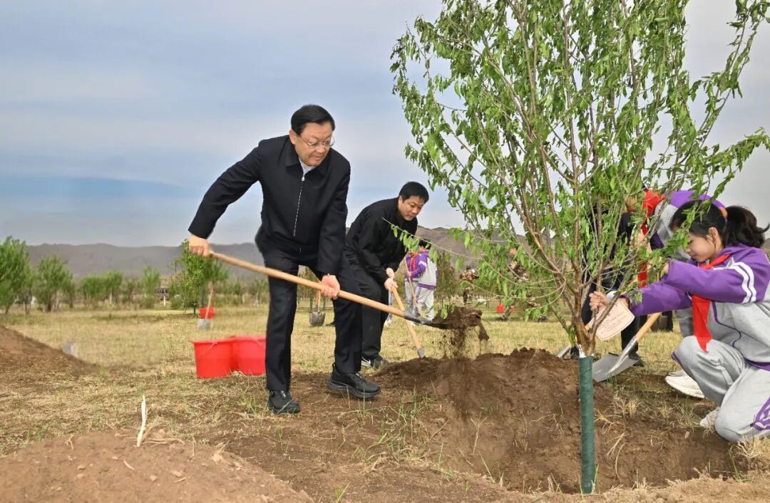 4月16日,自治区党委书记、人大常委会主任王伟中,自治区党委副书记、自治区人民政府主席包钢,自治区党委副书记、政法委书记时光辉等自治区省军级领导同志来到呼和浩特市新城区吉沙公园,与首府干部群众共同参加义务植树。