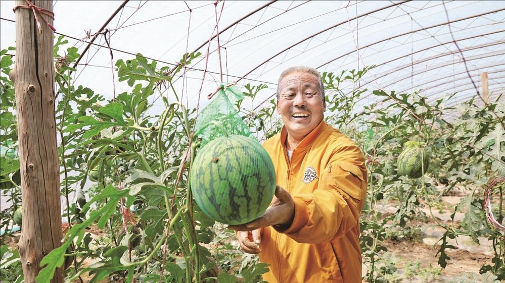 4月20日,乌达区乌兰淖尔镇泽园新村种植户在大棚内采摘吊瓜。 近年来,乌达区乌兰淖尔镇泽园新村因地制宜开展特色果蔬种植,创新多元化发展模式,持续壮大村集体经济,促进农区居民增收,助力乡村全面振兴。(赵政宇 摄)