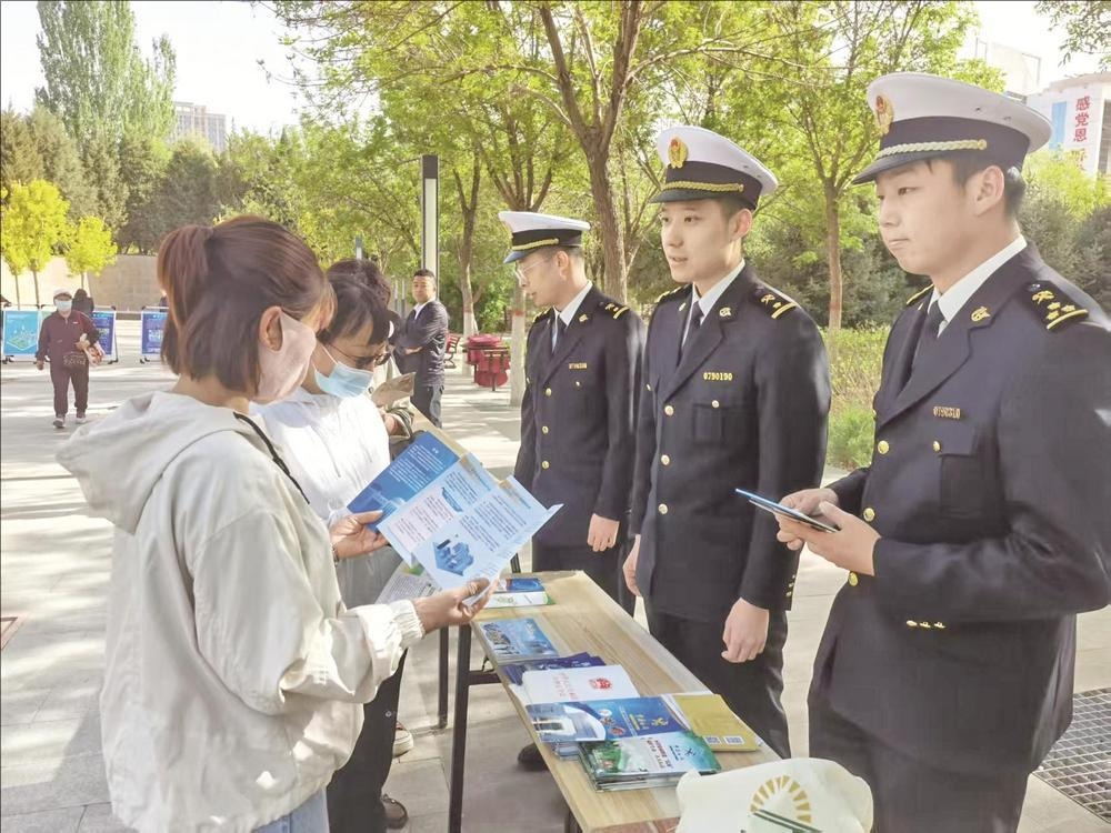 近日,乌海海关组织关员开展知识产权保护专项宣传活动,面向经营主体与市民群众普及海关知识产权保护相关知识,通过多场景、全覆盖宣传引导,切实增强公众知识产权保护意识,着力营造尊重知识、崇尚创新、诚信守法的良好社会氛围。 (王超 摄)